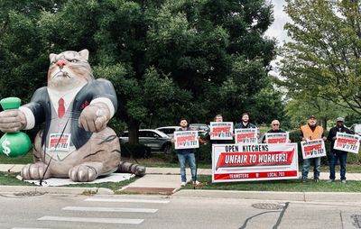 Teamsters were outside Mt. Prospect Golf Club today informing the public about Unfair Labor Practices committed by Open Kitchens.